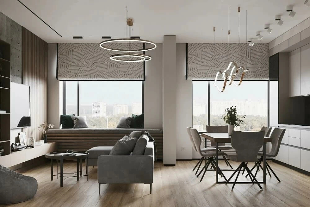 • Затемнение помещения. Если окна вашей квартиры или дома выходят на солнечную сторону, можно приобрести римские шторы из ткани блэкаут. Стильные изделия станут надежной защитой от лучей солнца. Можете сочетать их с портьерами, но обойтись без проекта от опытного дизайнера будет сложно.