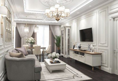 Лепной декор также позволяет эффективно зонировать пространство. С его помощью можно выделить различные функциональные зоны в одном помещении, что особенно актуально для студийных квартир. Например, потолочные фризы могут обозначить границы между кухней и гостиной, а колонны — визуально отделить рабочую зону от отдыха. Это делает внутреннее пространство более удобным и организованным, не перегружая его лишними перегородками.
