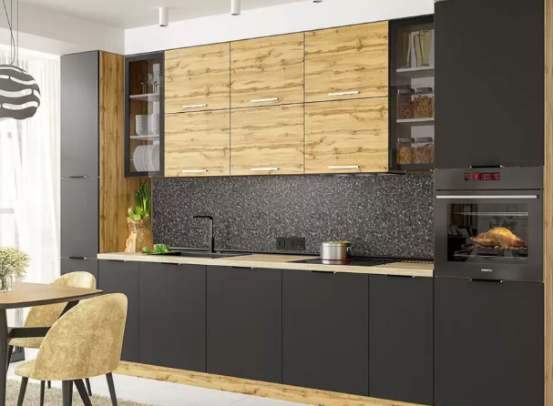 Функциональность модульной мебели позволяет комбинировать элементы, создавая уникальные композиции. Это может быть линейное расположение шкафов для небольших кухонь или угловая планировка, которая идеально подходит для увеличения рабочей поверхности. Полки, выдвижные ящики и встроенные механизмы обеспечивают удобство хранения посуды, продуктов и кухонной утвари.