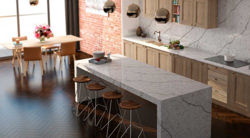 Прочность и долговечность: Кварцит и кварцевый агломерат невероятно прочны. Они устойчивы к царапинам, сколам и повышенной влажности, что делает их идеальными для кухонь и ванных комнат.