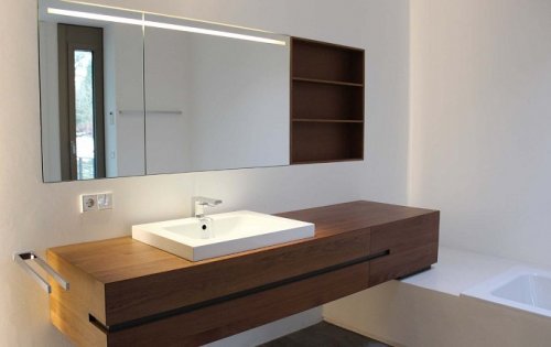 Тумбы под умывальник. Они не только скрывают трубы и обеспечивают дополнительное место для хранения, но и являются важным элементом дизайна. Тумбы из влагостойких материалов, таких как МДФ с защитным покрытием, позволяют избежать проблем, связанных с повышенной влажностью.