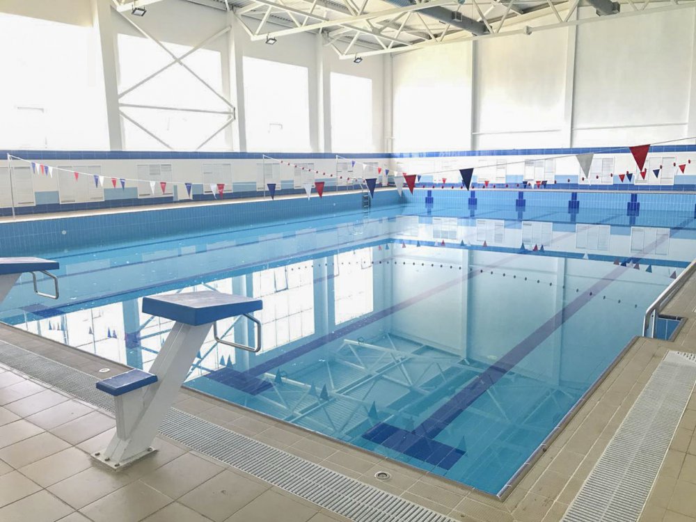 Проект реализовывался в рамках госпрограммы «Спорт Подмосковья» и финансировался из бюджета области. Здание комплекса имеет два этажа и общую площадь 2,300 квадратных метров. Плавательный бассейн предусматривает ежедневное обслуживание пяти смен по 60 человек в каждую смену. Кроме того, в ФОКе расположен пункт проката лыж, буфет, раздевалки, душевыми и другие помещения.