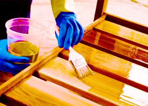 3. Масляные лаки. Состоят из сочетания природных смол, которые после растворяют в растительных маслах. После обработки дерево приобретает жёлтый оттенок, достаточно твёрдый на ощупь. Предназначены для помещений, в частности, для покрытия полов.